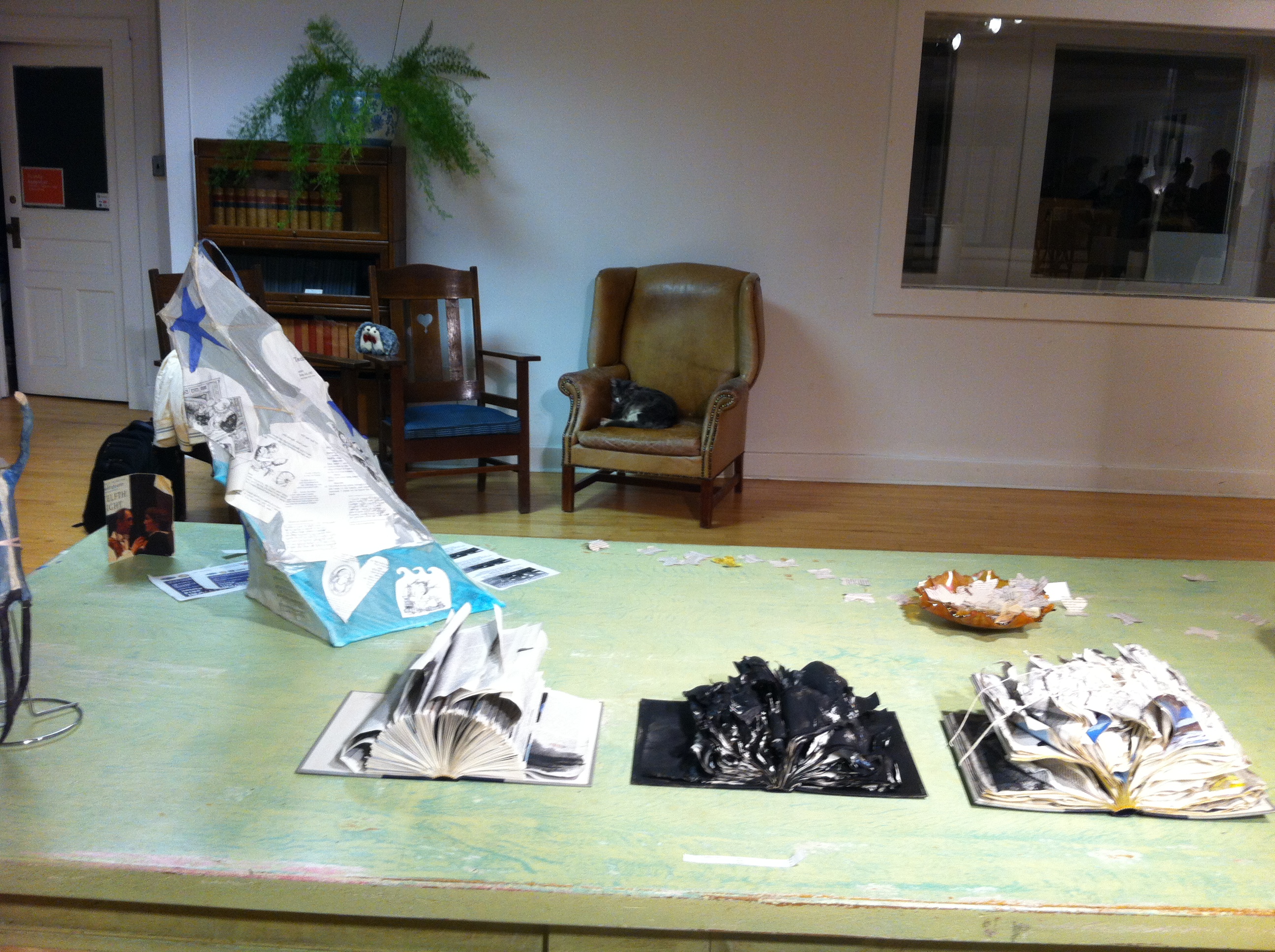 At the end of October, the Prince Edward County Library and Archives together with Books & Company hosted the “2014 DiscARTed Art show – creations from discarded books” in Picton, Ontario. It was the 3rd annual show, so the tradition is already well established. The purpose of the event was to fundraise for the library and also for an upcoming local authors festival. Visitors could buy what they liked. Profits weren’t the main result – fun was.