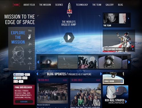 The project, sponsored by Red Bull, was called Red Bull Stratos. The Red Bull Content Pool website, which covers sports, culture and lifestyle, ran a special section, Red Bull Stratos Newsroom, to provide coverage of this project. An eye-catching website dedicated entirely to the project, redbullstratos.com, was also created as a glossy online magazine of sorts.