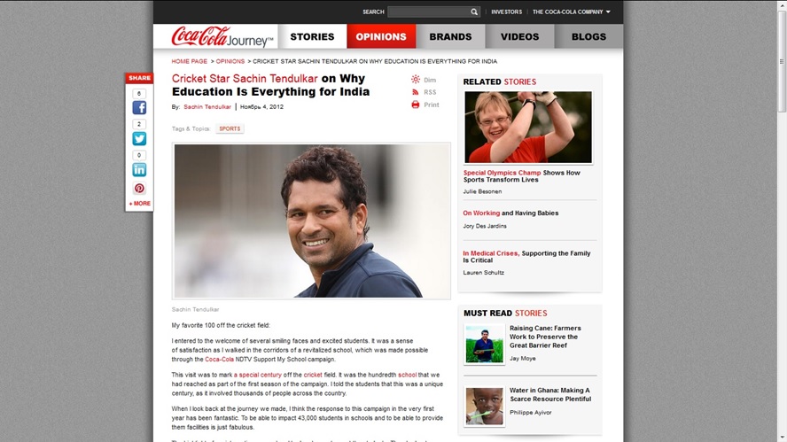 Coke Revamps Web Site to Tell Its Story. By Stuart Elliott. The New York Time, November 11, 2012.