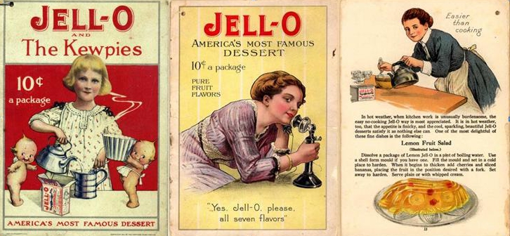 It goes without saying that the book’s recipes were based on the company’s products, making it, probably, one of the first examples of “content sampling” in the history of marketing. The Jell-O Cookbook quickly became popular and is published to this day, while previous editions are auctioned on eBay.