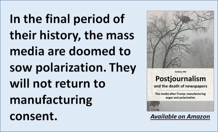 [25] Mir, Andrey. (2023, Spring). “The Viral Inquisitor. Social media have unleashed a culture of instant judging.” City Journal. I augmented the concept of the Viral Editor with the notion of the Viral Inquisitor after Martin Gurri made such a suggestion at a seminar.