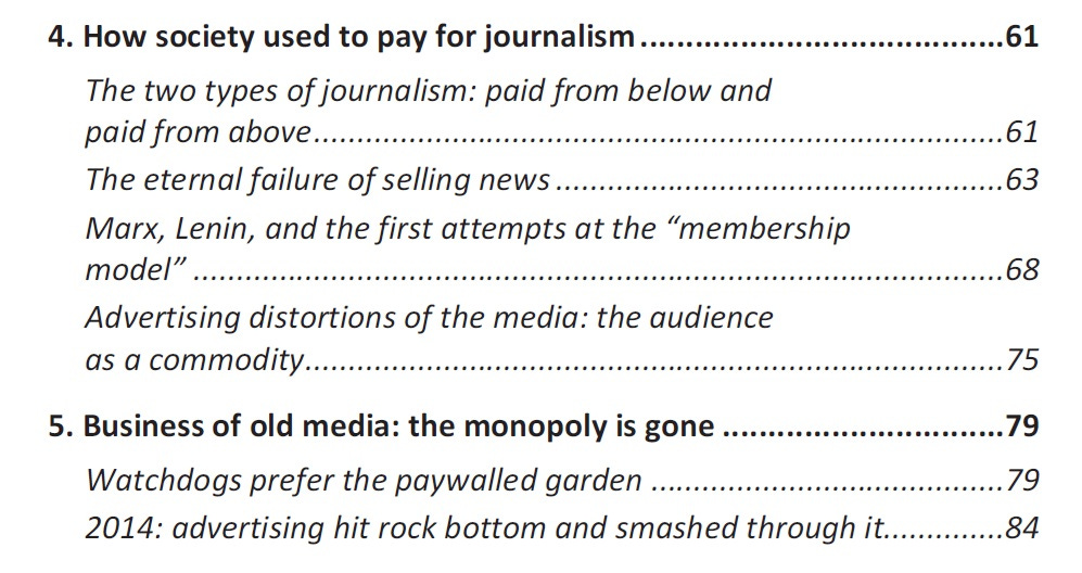 Those people still willing to pay for subscriptions have almost always already learned the news from social media, so they need journalism mainly to validate this news and to deliver the “right” interpretation to others. In terms of funding, they do not pay for news for themselves – they pay for news to be validated and delivered to others. This is, essentially, payment with a motive from above. But the mechanism of money collection formally remains subscription, that is, from below. This weird mix of a transaction from below with the motive from above emerged because the media learned to solicit donations to a cause in the guise of subscriptions.